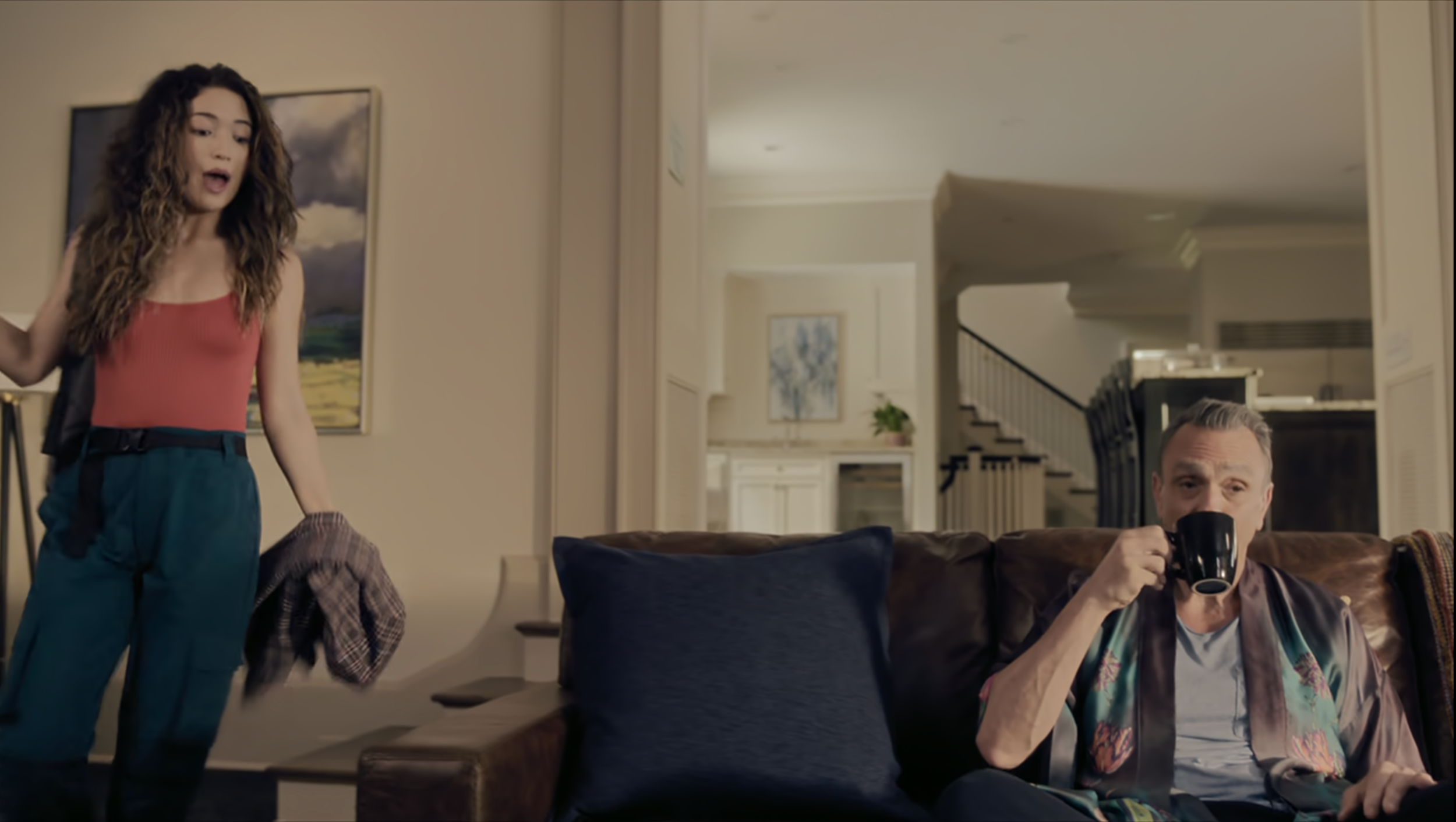 The fireplace, in particular, functions as more than an architectural feature—it’s the hearth of a life that once had rhythm and reliability. This is a home shaped by routine and emotional regulation, qualities Brockmire famously lacks.