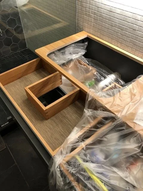 After cutting out the sink hole, we test fitted the sink and realized the drawer was touching, so we needed to modify the drawer.