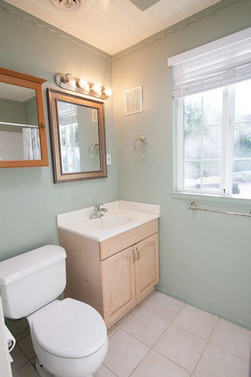 It was time to renovate a kids bathroom in an Eichler. The scalloped baseboard and ceiling trim painted in a seafoam green didn’t go with the rest of the house.