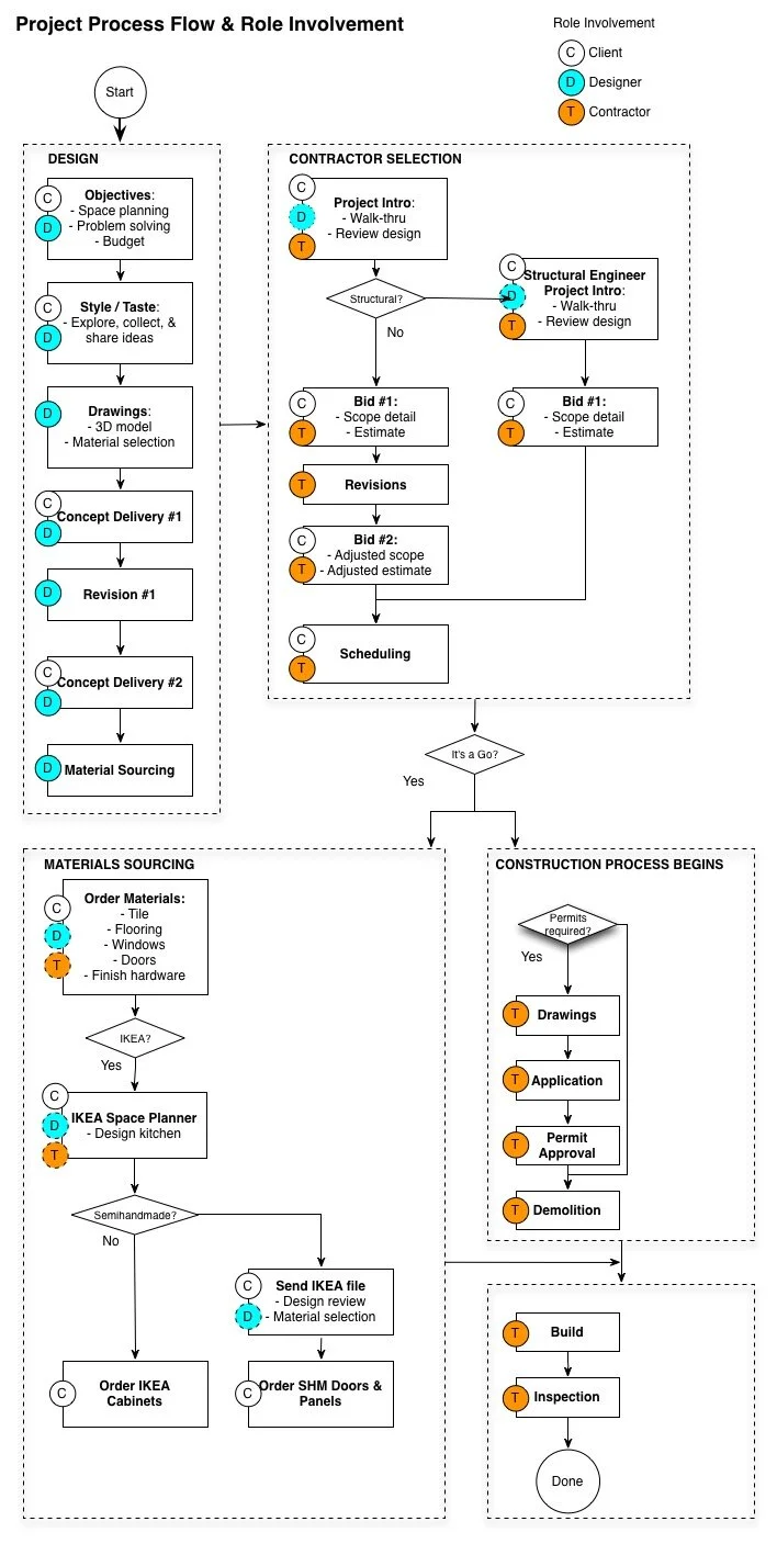 - Comprehensive of all services listed in this section, but keeping in mind a phased approach with prioritization and project management for a new home purchase with a particular need for a major holistic design redux.